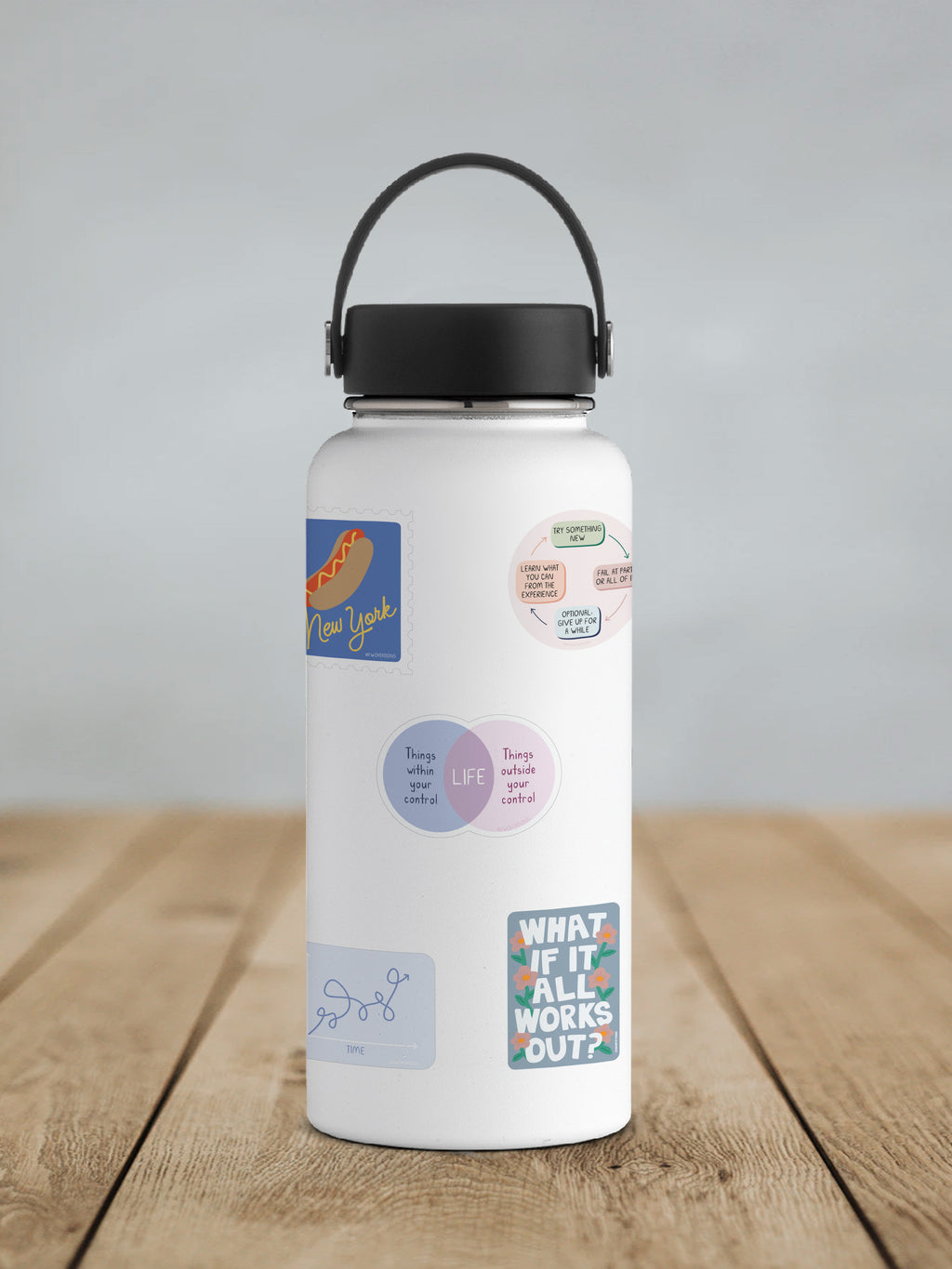 This matte vinyl sticker features a simple Venn diagram of what we can control and what we can’t — a gentle reminder that real life unfolds in the middle. Because life usually happens somewhere in the overlap.