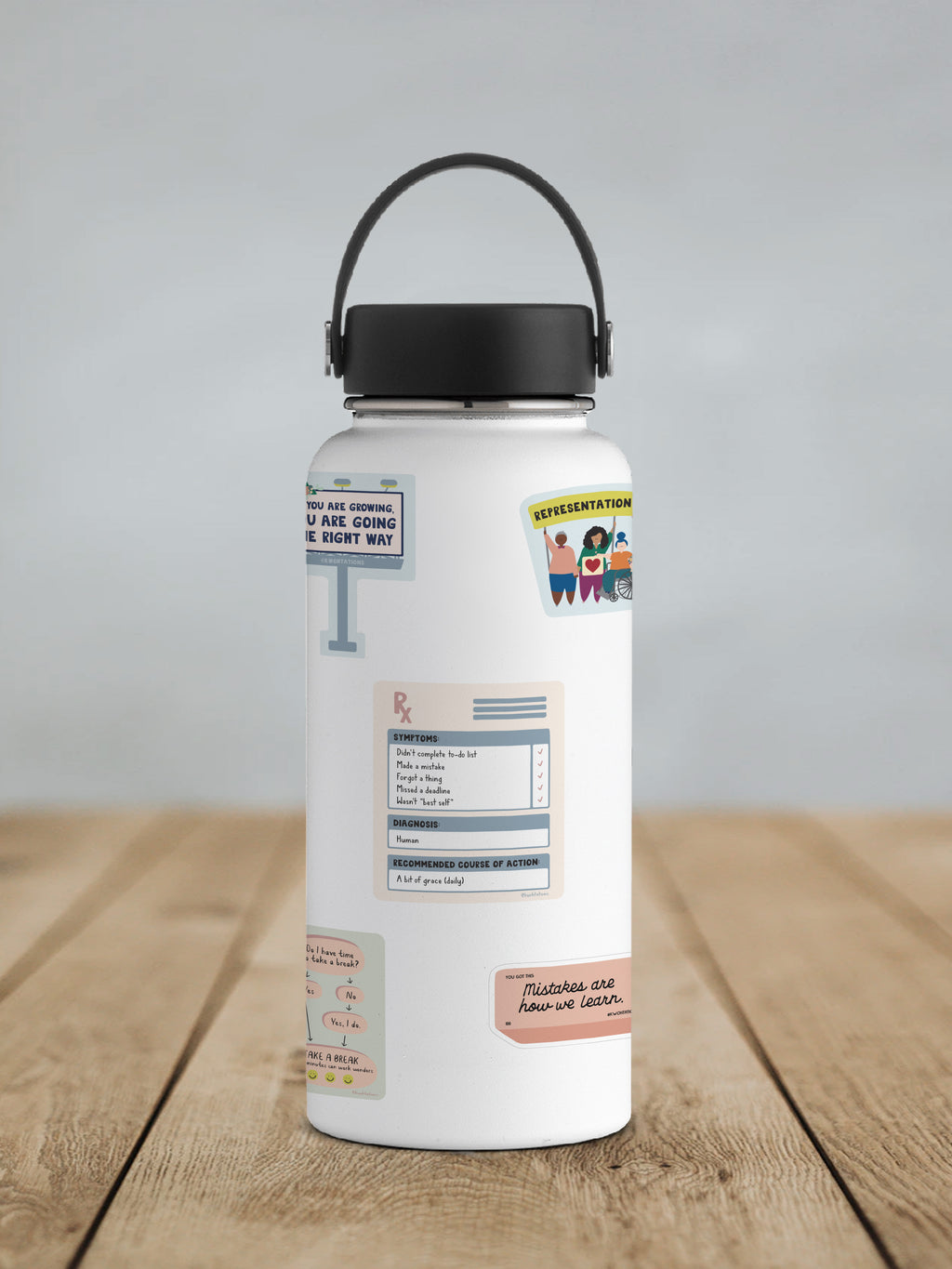 Durable and waterproof, it’s perfect for your laptop, notebook, or water bottle — a little sticker that says, “You’re doing fine, just as you are."
